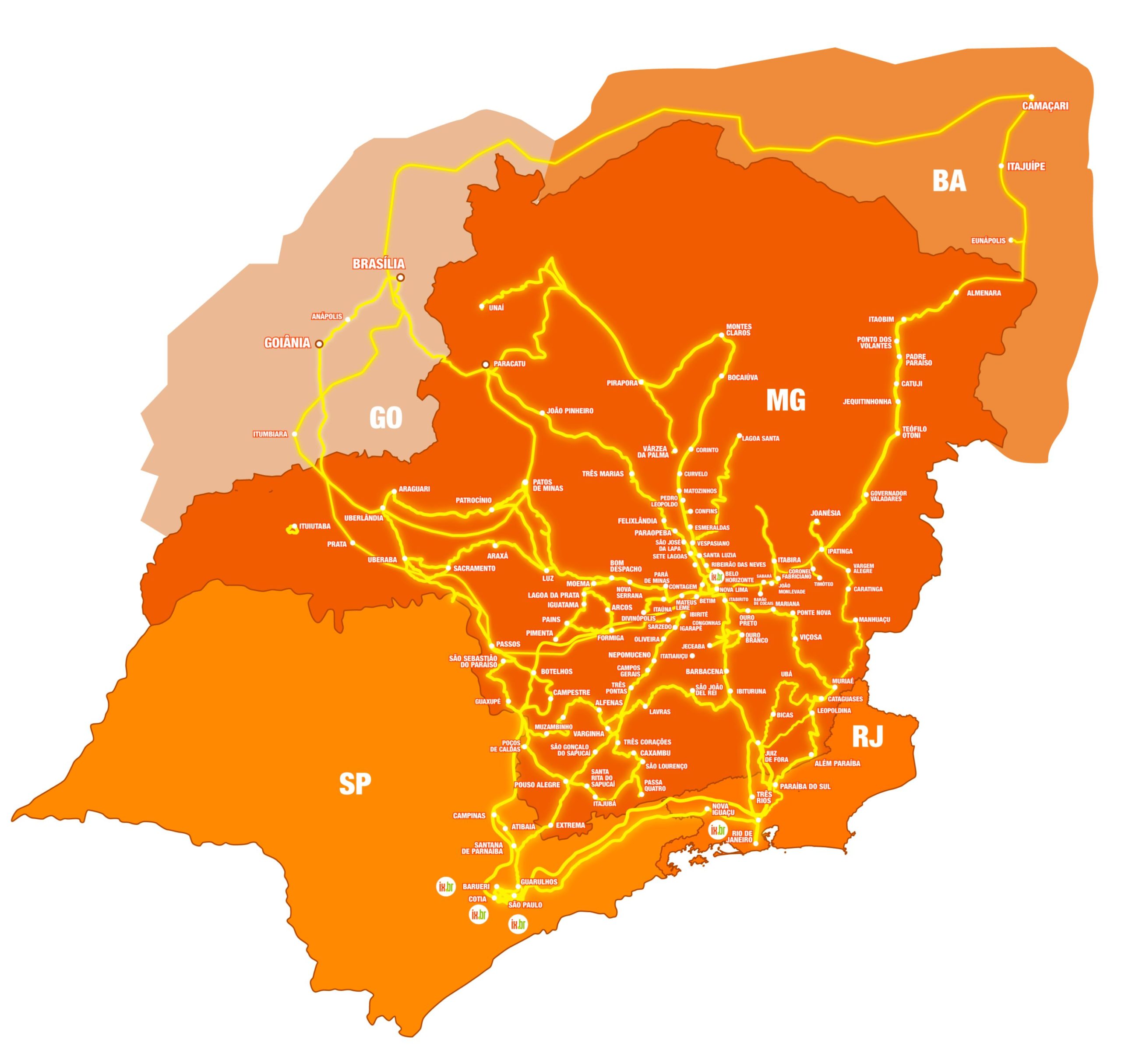 Presença em mais de 120 cidades em Minas Gerais e expanção para as cidades de São Paulo e Rio de Janeiro